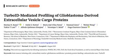 In her paper, Marissa shows that glioblastoma (GBM) progression is driven by brain tumor–initiating cells (BTICs) that communicate via extracellular vesicles (EVs). Using TurboID, she achieved the first unbiased global labeling of EV proteins in patient-derived BTICs, enabling proteomic analysis of diverse EV cargo and advancing understanding of GBM communication, biomarkers, and therapeutic targets.